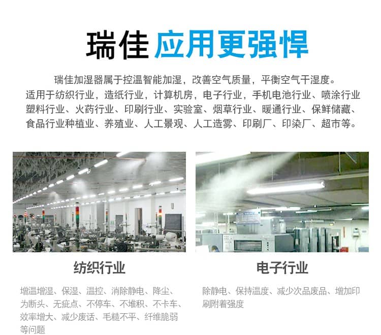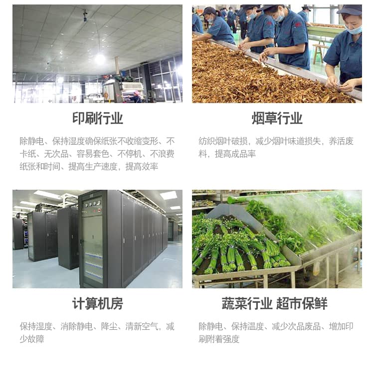 烟草行业:烟草加工、生产湿度控制及降尘。