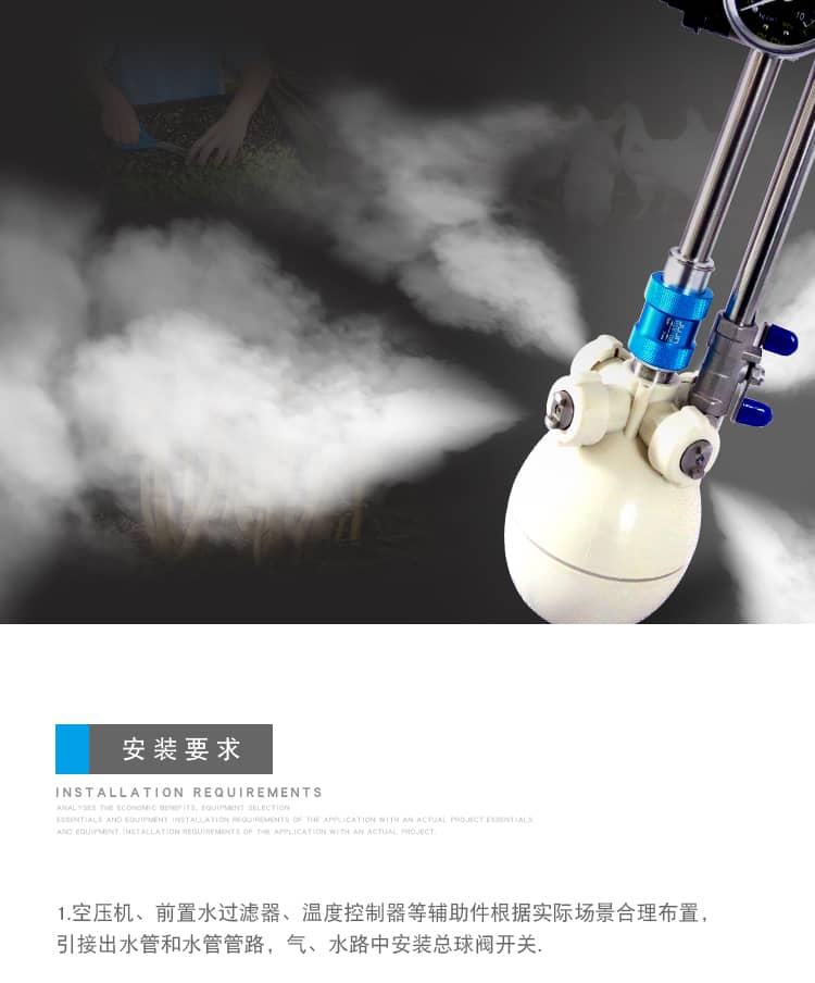9、安装快捷方便,喷射方向可以在任意角度调节,只要连接空气压缩机,就可以轻松喷雾