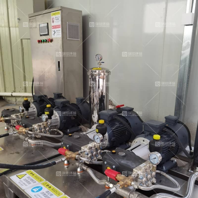 河南瑞佳环境科技有限公司猪场智能化集中式高压清洗系统设备,多点使用:集中安装,自动控制:瑞佳集成式畜牧业高压清洗系统,安全高效:省时省工:节水环保:低耗易维护,是现代化大型养殖场的生产辅助设施! 整体安装式控制系统,专为集成式高压清洗系统实际;可实现系统的各种控制功能和安全保护;如过热保护,过载保护,缺相保护,缺水保护,泄漏保护,压力预设,时间预设等诸多功能于一体的智能化微电子控制系统。